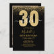 Hello 30! Invite your friends and family to celebrate the 30th birthday with this modern design. The design features a black background, the numbers thirty in faux gold glitter, with an elegant glitter gold background, elegant calligraphy, a modern birthday template that is easy to customize, and the option to add a photo on the reverse. Don't think twice and get yours now.