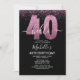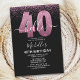 Hello 40! Invite your friends and family to celebrate the 40th birthday with this modern design. The design features a black background, the numbers thirty in faux pink glitter, with an elegant pink glitter background, elegant calligraphy script, a modern birthday template that's easy to personalize, and the option to add a photo to the reverse. Don't think about it and get yours now.