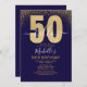 Hello 50! Invite your friends and family to celebrate the 50th birthday with this modern design. The design features a black background, the numbers thirty in faux gold glitter, with an elegant glitter gold background, elegant calligraphy, a modern birthday template that is easy to customize, and the option to add a photo on the reverse. Don't think twice and get yours now.
