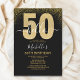 Hello 50! Invite your friends and family to celebrate the 50th birthday with this modern design. The design features a black background, the numbers thirty in faux gold glitter, with an elegant glitter gold background, elegant calligraphy, a modern birthday template that is easy to customize, and the option to add a photo on the reverse. Don't think twice and get yours now.