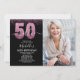 Hello 50! Invite your friends and family to celebrate the 50th birthday with this modern design. The design features a black background, the numbers thirty in faux pink glitter, with an elegant pink glitter background, elegant calligraphy script, a modern birthday template that's easy to personalize, and the option to add a photo to the reverse. Don't think about it and get yours now.