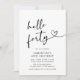 Celebrate turning forty with style using this modern black and white “Hello Forty” birthday invitation. Featuring sleek typography and a minimalist layout, it’s perfect for an elegant dinner, cocktail night, or sophisticated milestone party. A timeless and classy choice for your 40th birthday celebration.