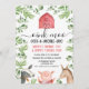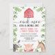 Green Red Joint Farm Animais Foliage Aniversário Convite para animais de exploração em bruto e folhagem Aniversário para junção à festa de aniversário. Este design apresenta um belo celeiro, porco, vaca e burro, bem como vários verdes ou folhagem em torno das bordas do convite.