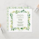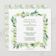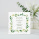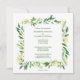 Simples e elegante, estes convites de casamento são a forma perfeita de convidar todos os seus amigos e família para a sua grande primavera ou grande comemoração do verão. Apresenta uma paisagem verde à volta de um quadro na frente que envolve o texto verde e um padrão de dll, hortelã, tomilho, salsa, galho de oliveira e outras folhas. O dorso está coberto por um padrão de ervas medicinais.