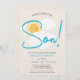 This cute boy's baby shower invitation says "Here Comes the Son" in modern script calligraphy and features watercolor sunshine and clouds. Original Watercolor © Michele Davies.