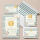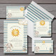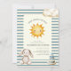 Celebrate the arrival of your little one with this adorable 'Here Comes the Sun' baby shower invitation. Featuring a charming watercolor sun graphic, a fluffy cloud, and a sweet bunny plush toy, this design sets a joyful and whimsical tone for your special event. The soft blue and cream striped background adds a touch of classic charm, making it perfect for a baby boy's shower. This invitation is designed to bring smiles and excitement as you share the wonderful news with your loved ones, announcing a baby shower in honor of Shannon.