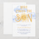 Invite family and friends to your sun-themed baby shower with this cute sunshine boys' baby shower invitation.