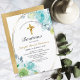CONVITES HERMOSO BAUTIZO BEBÉ CRUZADO DE ORO FLORAL AZUL