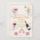A festive Galentine's Day invitation featuring corner illustrations of wine glasses, champagne bottles, and layered cakes with the playful "hey babe!" greeting. The elegant gold border and scattered hearts create a celebratory atmosphere. Fully customizable for your party details. Perfect for brunch parties, cocktail gatherings, or any celebration of friendship and love.