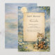 Featuring a softly illustrated woodland kitten holding a violin beneath a glowing moon, this invitation blends classic heirloom charm with gentle watercolor textures for a timeless nursery feel. A parchment-style center panel allows for easy personalization while preserving the romantic storybook aesthetic.