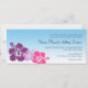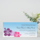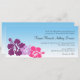 Ficando preso no Havaí ou em uma localidade tropical parecida? Deixem todos entusiasmados com estes convites para casamento ao estilo tropical. Design apresenta três grandes floradas de hibisco em cores festivas. Os nomes dos casais são definidos em caracteres grandes de script. As informações do evento são definidas em uma fonte elegante contra um fundo azul-aquoso legal.