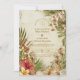 Celebrate your wedding day with timeless tropical elegance. This romantic design features lush hibiscus blooms, soft palm leaves, and painterly botanical details layered over a warm, vintage-inspired background. The refined typography and airy island palette create a sophisticated destination wedding feel that’s perfect for coastal venues, tropical resorts, or summer celebrations.