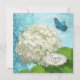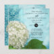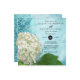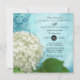 Esta design é uma trabalho de arte de pintura manual moderna projetada por uma artista internacionalmente licenciada Audrey Jeanne Roberts num formato de convite para a tipografia contemporânea que é facilmente personalizado para a sua própria versão de casamento usando os campos de modelo editáveis fornecidos. Um solteiro branco de hidrangea floresce com folhas verdes de verão muito ricas e profundas está sobre uma mão pintada, uma lavagem de aquarelas soltas de azul-céu e azul-claro. Escondidas em segundo plano estão alguns elementos de vintage, como um script publicando logotipo antigo com escrevendo manual e espirais misturados com gravações de rolagem. Direitos autorais.
