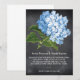 CONVITES DE NOIVADE PERSONALIZADOS COM HORTÊNSIA AZUL LOUSA. Concebidos para um casamento de verão ou outono, estes convites de casamento modernos de lousa apresentam uma grande hortênsia azul sobre um fundo de design de lousa em convite de casamento com texto de convite de casamento moderno, sendo um modelo de convite de casamento totalmente personalizável que permite personalizar os detalhes do seu casamento online. A prova do convite de casamento digital em lousa é exibida ao vivo na tela enquanto você digita e o que você vê na tela é como será impresso, portanto, verifique a ortografia dos detalhes do seu casamento antes de comprar estes convites de casamento, pois o texto não é corrigido após a realização do seu pedido. Este modelo de convite de casamento em lousa está configurado com a noiva e o noivo como anfitriões do casamento. Se precisar de ajuda com espaço de texto adicional ou outros detalhes de design, por favor, contacte PineAndBerry@Gmail.com e inclua um link para este convite de casamento no seu e-mail