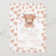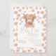 Adorável convite para chá de fraldas de vaca em terras altas. Edite facilmente os detalhes de sua parte e transfira o design para coordenar suas decorações.