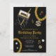 A hip hop 80's 90's style gold Cuban link chain and cassette tape birthday party invitation design perfect for birthday parties with a hip hop theme. Customize this hip hop birthday invitation with your text. Hand drawn Cuban link chain and accessories on a black background.