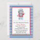 Este convite bonito do chá de fraldas para o menino caracteriza o hipopótamo pequeno no terno e no chapéu de marinheiro. A beira é listras azuis e brancas. Indicado como um convite do chá de fraldas, mas igualmente aperfeiçoe para uma festa de aniversário. Gráficos www.bearnecessitiesscraps.com, www.digiwebstudio.com