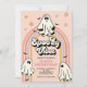 Víblias assustadoras! Convite de aniversário de Halloween do Fantasma Hippie. Uma festa de segundo aniversário manchada, convidada com fantasma retrô, flores e morcegos.