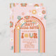 Fique Trippy Hippie! Retro inspirou o convite de aniversário do arco-íris com fontes e cores do estilo 70.