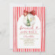 Featuring classic red watercolor stripes, a champagne bottle and glass inside a holiday ornament, and a pretty red bow, this design is perfect for a Christmas or winter bridal brunch.