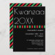 Um convite vertical para uma celebração Kwanzaa. O convite é vermelho, preto e verde com letras brancas. Personalize o texto, adicione este convite ao seu carrinho e aproveite o seu evento Kwanzaa. Holiday Typografia Kwanzaa Invation Holidayday Design | ©Melissa Patton