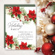 Este elegante convite para festas de Natal apresenta um belo galho de pinheiros everdeados e um arranjo de flores de poinsettia em fundo branco. O convite é perfeito para convidar seus amigos e família para um encontro festivo. O design geral é festivo e sofisticado, e o convite é para impressionar seus convidados.