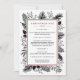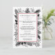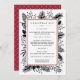 O moderno e elegante cardápio de janto da véspera de Natal design, da Sequoia e da Vinha, mostra seus deliciosos pratos de Natal enquadrados por uma borda vermelha de amora, com botânicos festivos espiando-se nas bordas de preto e branco.