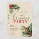 Holly e Pine no convite para o casamento de Natal bege, com um belo spray de bagas ocas, vermelhas e pinheiro no convite de festas para uma festa festiva de Férias.