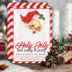Este convite de festas natal vintage do século médio mostra Papai Noel com as palavras 'Holly Jolly e pronto para festas' com uma fronteira brilhante vermelha e branca de cana doce e de apoio. Personalize adicionando detalhes pessoais de sua festa na frente com espaço extra na parte traseira para obter detalhes adicionais.