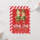 Este convite de festas de Natal apresenta um belo par de elfos Papais noeis vestidos de canas doces verdes e de carregando vermelha e apresenta dizendo "Holly Jolly e pronta para festas" com uma brilhante borda vermelha e branca de cana doce e respaldada. Personalize adicionando os detalhes pessoais do seu partido.