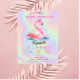 Legal flamingo rosa adorável no fundo holográfico do arco-íris.