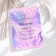 Um convite giro e feminino Doce 16. Na frente: Um fundo holográfico colorido em roxo, rosa. Decorado com confete cor-de-rosa penteado. Personalize e adicione um nome e detalhes da parte. O nome é escrito com um script de estilo manuscrito, letras cor roxa.