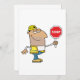 Um homem que está guardarando um sinal da parada ao tráfego direto. Este design olha realmente eficaz no este convites