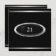 Partido de aniversário de 21 anos de prata & preto, apropriado para um homem ou uma mulher. Todos os eventos, celebrações, aniversários dos anúncios e convites de festas de aniversários. Apropriado para todos os aniversários e eventos da idade. Rsvp está disponível em cima do pedido no estilo similar. Preto à moda bonito com guarnições de prata claras e caracterização da listra do metal de placas pretas e de prata do Oval do metal. Mude o estilo do texto com personalizam.