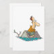 Um homem sentado no telhado da casa dele, numa inundação. Este design parece realmente eficaz neste Convite