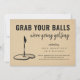 "Pegue suas bolas. Vamos jogar golfe." Um convite para adultos engraçado para uma festa de aniversário de golfe, festa de aposentadoria ou despedida de solteiro.