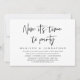 Convite de casamento tema Moderno Script (Agora é hora de festejar). É perfeito para o seu jantar de casamento casual à beira do lago, dança e festa.