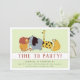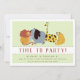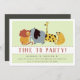 Chame todos os animais de partido! Convide os convidados à festa de aniversário do seu filho que usa estes convites temáticos animais modernos doces. "HORA DE PARTY!" é indicado com uma listra que vai através de uma folha de prova verde pastel com uma linha tracejada fazê-la estar para fora ainda mais. Caracterizando um leão, um elefante, um girafa e um leopardo em um estilo na moda. Você pode facilmente personalizar com detalhes do nome e do partido do seu filho.