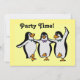 Este convite divertido combina com os outros suprimentos da festa com os mesmos pratos de papel e guardanapos, pop de bolo e cartão de saudação, e adiciona o toque final aos planos do seu partido! Ele apresenta um trio de adoráveis pinguins dançarinos vestindo gravatas arcos coloridas e diz "Hora da Festa!" na frente e atrás há uma saudação e um lugar para suas informações. Todo o texto pode ser alterado para ajustado da sua ocasião!