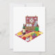 Uma cena piquenique com comida e uma cesta em um tapete. Este design parece realmente eficaz nestes Convites
