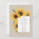 Este convite de casamento com o tema do girassol captura perfeitamente a essência de uma celebração do celeiro de um país com o seu estilo rústico de design. Adorado com lindos girassóis de aquarela colocados sobre um claro fundo bege, ele expele uma atmosfera quente e convidativa. Dimensionada a 5 x 7 polegadas, é uma dimensão ideal para um convite clássico. O convite é impresso de dois lados, com cores amarelas vibrantes e beges, garantindo que cada detalhe do design seja belamente mostrado.