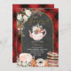 Horário EDITÁVEL Quatro Festas de Chá Xadrez de Natal 4º Aniversário Convite Elegante Quadro Branco Floral de Natal de Natal Festa de Chá Vermelho e Xadrez Negra Bolo de Natal Convite de Natal