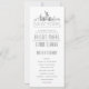 Um programa de casamento temático deco skyline para um casamento que ocorre na bela cidade de Nova York, Nova York. Este item apresenta uma ilustração estilizada da skyline única da cidade com seu nome embaixo. Isso é seguido pelas informações do seu dia de casamento em um estilo de linha aberta correspondente.