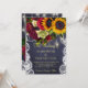 Modelo de convite quadrado no estilo de vintage russo no estilo de casamento no fundo chalkboiard azul-marinho escuro com grandes girassóis de ouro amarelo e buquês vermelho-burgundy, cordas de luzes brancas cintilantes, bordas falsas de renda, cordas de pérolas e um roteiro falsa de tipografia de ouro. +++++++++++++++++ Fácil de personalizar com seus detalhes! Você pode personalizá-lo alterando ainda mais as fontes e as cores das letras. +++++++++++ O convite é adequado para o inverno, outono ou Verão no jardim exterior/quintal no quintal tradicional vintage em casamentos de inspiração tradicional.