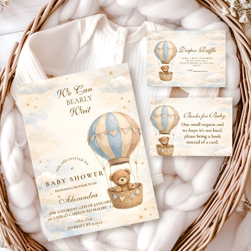 Convites Hot Air Balloon Teddy Bear Baby Shower