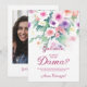 The "Charming Delicate Colorful Wildflowers Quinceañera Dama with Photo Proposal Card" is a proposal card designed to invite someone to be part of the honor court in the celebration of a quinceañera. Featuring a design with a set of colorful and delicate wildflowers, it offers a unique and personalized way to propose involvement in this special moment.