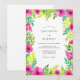 This design showcases vibrant hot pink anemones and lush watercolor greenery in a lively arrangement. A bright palette of magenta and lime green creates a cheerful atmosphere perfect for a seasonal theme. Artistic watercolor leaves and delicate petals provide a fresh, botanical aesthetic.