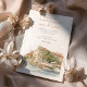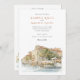 Convide os seus convidados para uma celebração italiana inesquecível com este belo convite para o casamento em aquarela, mostrando o lendário Hotel Cipriani, um Hotel Belmond, em Veneza, Itália. A trabalho de arte capta lindamente a icônica arquitetura veneziana do hotel, com suas paredes quentes, amarelas e ocres, telhados clássicos de terracotta, e balcões encantadores olhando o canal sereno. Estanques de ancoragem (palino) distintos, vermelhos/laranja e listrados brancos (palinos), linha da frente da água, um detalhe veneziano quintessencial. O famoso terraço do hotel é retratado a romper com flores vibrantes - uma abundância de pinças luxuosas (que vão de moles a vibrantes), brancos delicados, e talvez pistas de amarelo cremoso, que provavelmente apresentam flores clássicas de jardim como rosas, gerânios, ou bougainvillea, todas aninhadas entre a rica folhagem verde. As oliveiras verdes, que podem incluir oliveiras, contribuem para o charme mediterrânico. Rendido em um estilo aquoso e romântico que evoca a luz e a atmosfera únicas de Veneza, esse convite é perfeito para um casamento de destino luxuoso ou para casais encantados pelo romance eterno da Itália. O verso oferece "Os Detalhes Mais Finos" para informação de convidado, continuando o belo trabalho de arte Venetiano. A paleta colorida inclui amarelos cremosos, ocres, vermelhos terracotados, pinças vibrantes, brancos macios, vários tons de verde-verdeado e o azul suave da água.