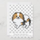 A ilustração original do desenho animado de Destei de um cão de raça Pomeraniana de casaco tricolor de cão bonito. O fundo tem um padrão de pegadas de cinza. A frente lê "Você é convidado..." e atrás há áreas de texto personalizáveis para os detalhes do evento.