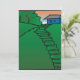 Uma casa azul sentada sobre uma colina verde. Esta design parece realmente eficaz neste Convite
